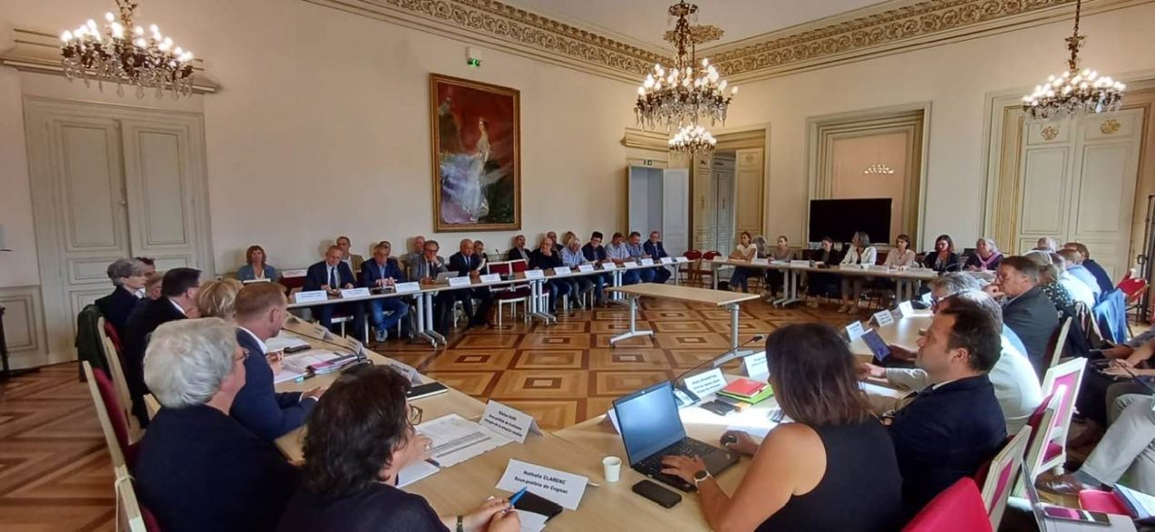 Table ronde à la Préfecture de la Charente accompagnée de mon collègue sénateur de la Sarthe, en présence de nombreux élus de la Charente, dans le cadre de la mission d’évaluation du dispositif Petites Villes de Demain.
