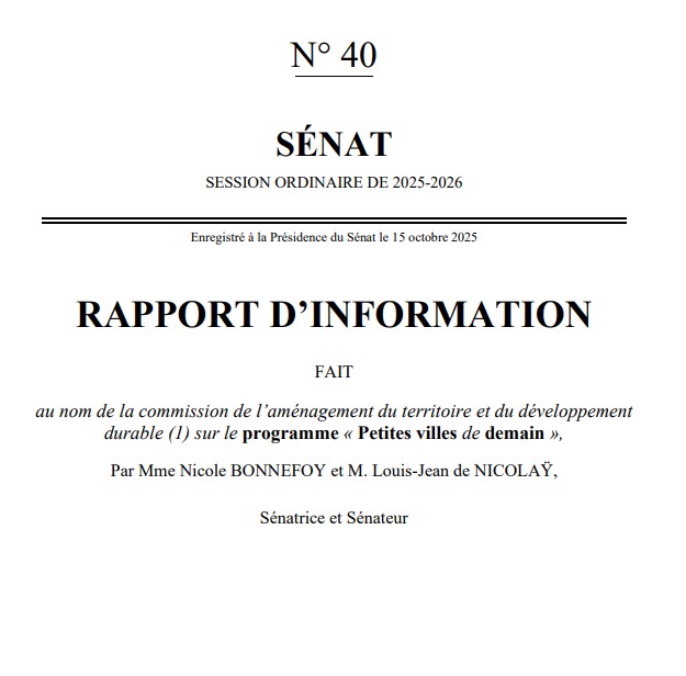 La commission de l’aménagement du territoire du Sénat a adopté à l’unanimité le rapport d’information de Nicole Bonnefoy et Louis-Jean de Nicolaÿ sur le programme national « Petites Villes de Demain » (PVD).
